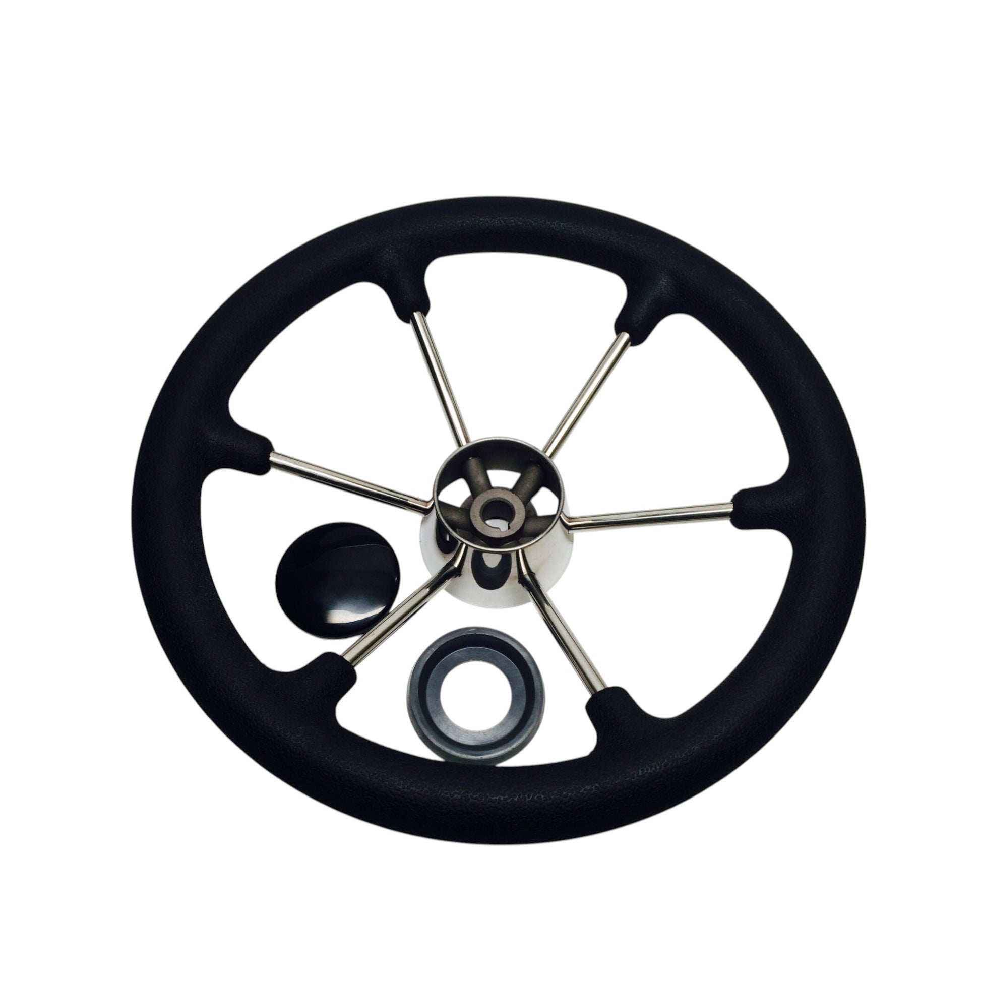 - This High Quality steering wheel is made of SS 304 with black sleeve.
