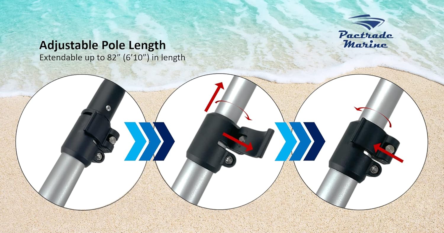 - ✅【Marine Boat Hook with Adjustable Length】This is a telescopic boat hook that features anodized aluminum tubing with a red plastic tip to prevent hook from damaging easily and a locking mechanism. All telescoping models open quickly and twist-lock securely so that the length will not change. This floating boat hook also extends from 48-5/8" to 85".