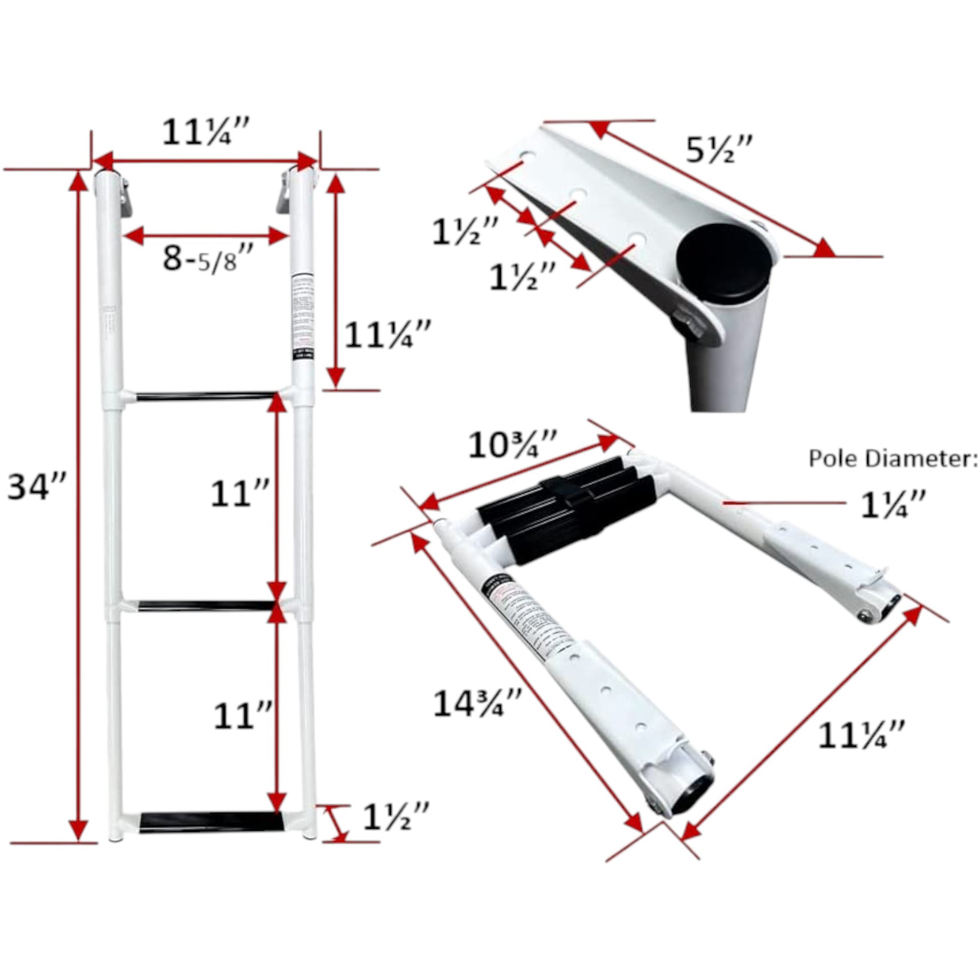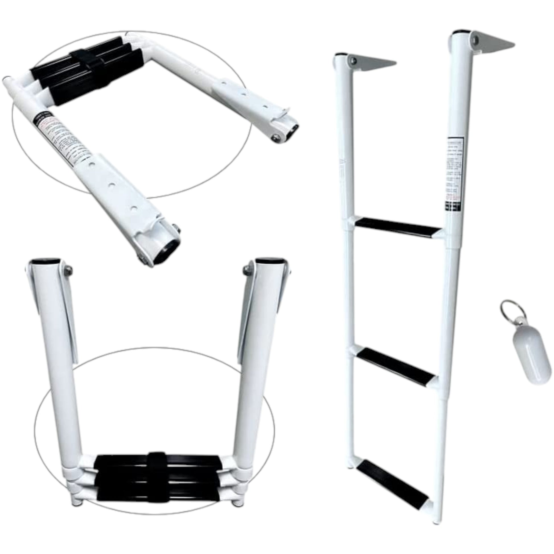 Pactrade Marine Boat White Teflon Telescopic Ladder Salt Water Corrosion & Scratch Proof Swim Step Over Platform Fold Compact Stowed White Keychain (3-Step)