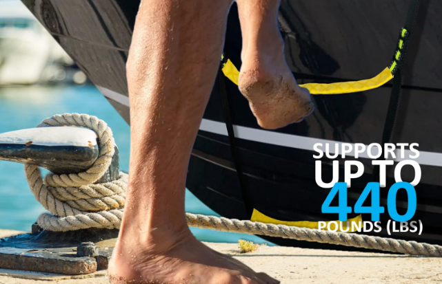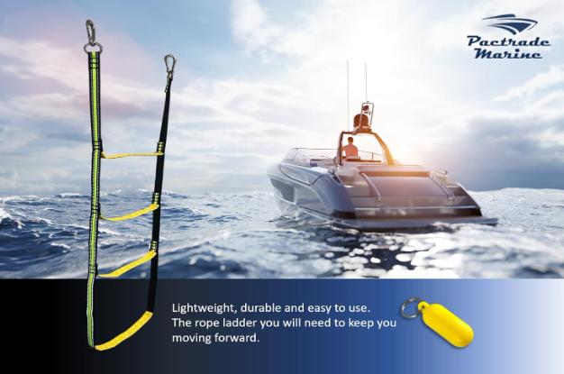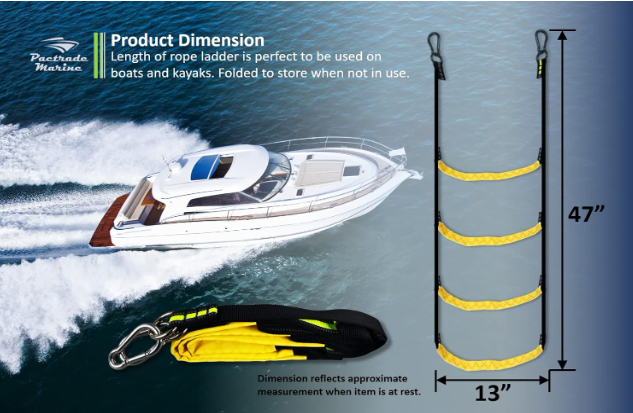 Pactrade Marine Emergency Rope Ladder Keychain Assist Boarding Nylon Foldable for Inflatable Fishing Dinghy Boat Kayak Motorboat Canoeing Sailboat Yacht (4 Steps)