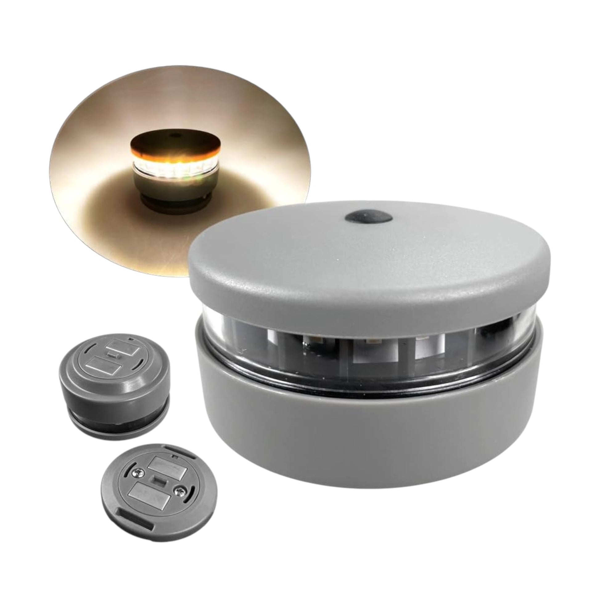 Pactrade Marine Grey Housing Button Navigation Light Various Modes Magnetic Base Surface Mount Black Straps LED AA Battery Operated IP:67 CE RoHS Certified (Warm White)